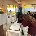 Al finalizar la misa, cada estudiante firmó el Libro de Ex Alumnos, gesto que los incorpora oficialmente a la historia viva de nuestro colegio.